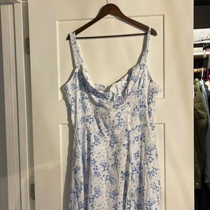 Pretty floral blue dress with corset style waist. Not stretchy. Tag says 3X but maps to a US 14/16. Note the dress is rather sheer.