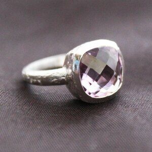 Cushion Amethyst Sterling Silver Ring: Handmade Gemstone Statement Ring