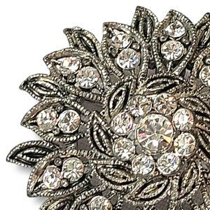 Cushion Brooch Retro Design Antiqued Silver Tone Faux Diamo…