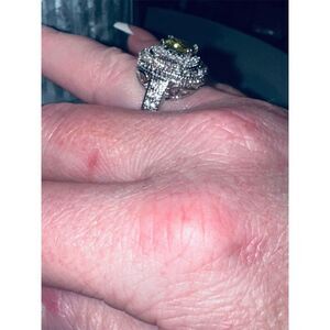 Cushion Double Halo Green Peridot Sterling Silver Cocktail ring in size 7.