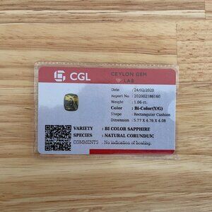 Amazing natural, unheated parti sapphire. It is a beautiful mix of yellow and green that produces a vibrant blue stripe. It's really one of a kind.
