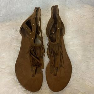 Cushion Walk Avon Sandals Brown Fringe Open Toe Vegan Suede Studded Women’s 11.