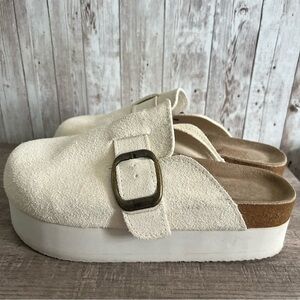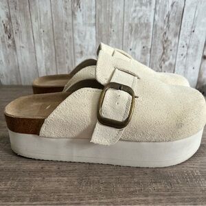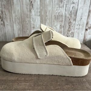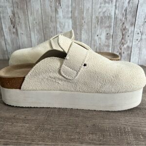 Cushionaire Cream Suede Platform Clogs 9