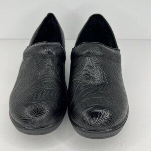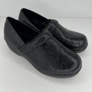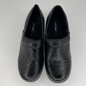 Cushionaire Embossed Solid Black Clogs Women's Size 8 Slip Resistant Soles
