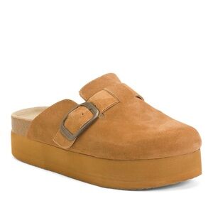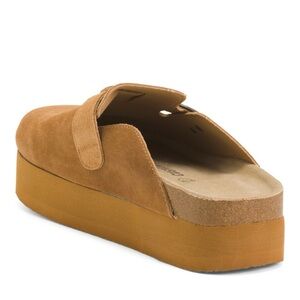 Elevate your look with these stylish tan suede platform mules. Perfect for any casual occasion, they combine comfort with a modern flair.