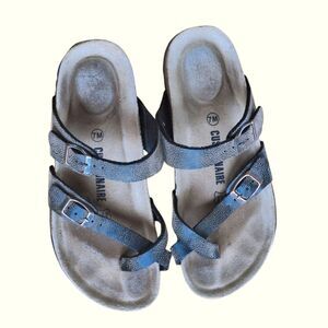 Cushionaire Luna Brown Strappy Comfort Sandals Leather Cork Footbed Women's 7M