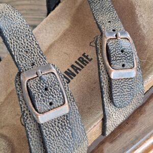 INSOLE IS GENUINE LEATHER; STRAPS ARE VEGAN