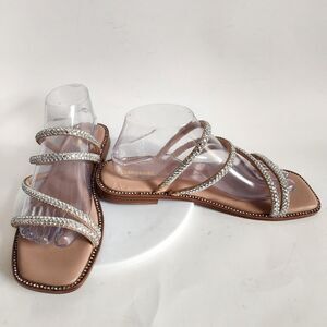 Cushionaire Sandals Size 10 Dressy Flats Comfort Slides Rhinestones Memory Foam