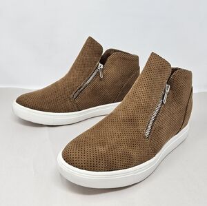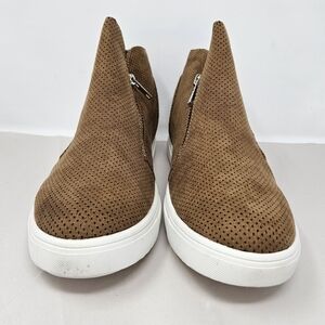 Cushionaire Sneakers Womens Sz 8.5M Cognac Faux Perforated Suede Hidden Heels