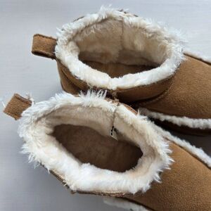 Cushionaire Suede Shearling Mini Boots Size 8 Womens Tan NEW Fur Trim Flatform. Brand new with tag, no flaws.