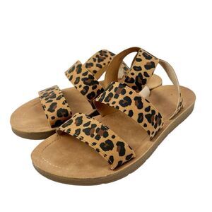 Super cute pre-owned Cushionaire Indego Tan Leopard Stretch Flat Sandals Size 7.5. Ankle strap is very stretchy. Normal amount of wear but no major flaws. Please ask all questions before purchasing.