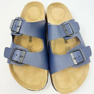 Cushionaire LANE Blue Nappa Leather Suede Pad Double Strap Slide Sandal