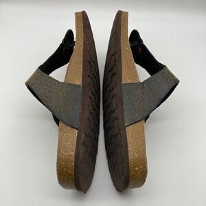 Cushionaire Leather T-Strap Sandals Size 9M Black/Gold Color