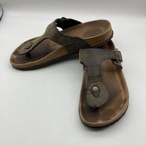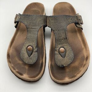 Cushionaire Leather Adjustable T-Strap Women’s Sandals Size 9M Black/Gold Color Pre-owned Gently Used