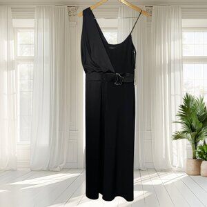 Cushnie Black Asymmetrical Sleeveless Spaghetti Strap Wide Leg Jumpsuit Size 4 NWT | Silk Lined Designer Belted