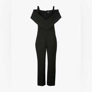 Cushnie Jumpsuit Womens 12 Black Off Shoulder Stretch Crepe Ankle Length