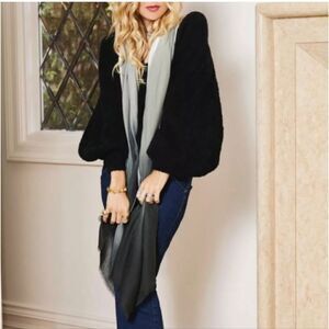 Wrap yourself up in CUSHNIE’s Grey Horizon Ombre Scarf. Super soft and luxuriously oversized, you can wear it around your neck, cinch it with a belt, or even use it as a blanket for a cozy night in.