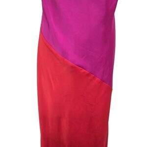 Cushnie X Target Women Pink Red Colorblock Asymmetrical Slip Dress 8 Midi Cowl Neck Satin