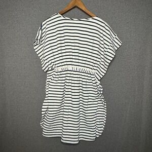 Cusma Swim Cover-Up Beach V-Neck Navy Stripe Nautical Size Large