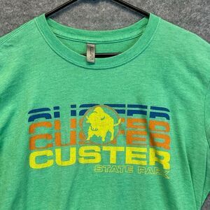 Custer State Park T-Shirt Women's Large Green Crew Neck Short Sleeve Buffalo EUC
