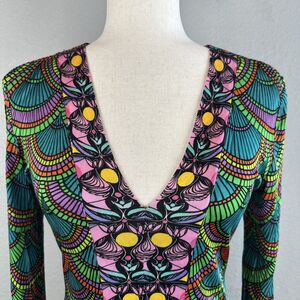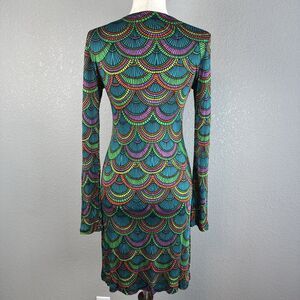 Custo Barcelona Long Sleeve Mini Dress Size 1 S Colorful Geometric Jersey V-Neck