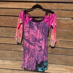 Beautiful Unique Custo Cold Shoulder Tunic Shirt Dress with Eagle Motif (shirt only)