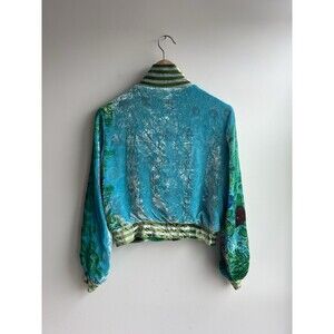 Custo Barcelona Silk Multi Color Zip Up Jacket Peacock Crushed Velvet Size 40