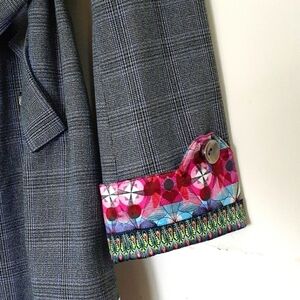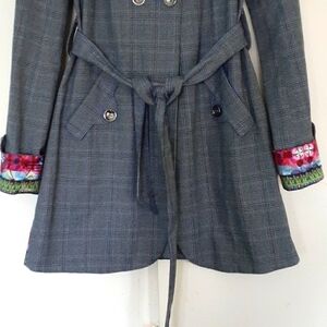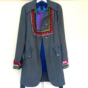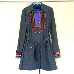 Custo Barcelona Vintage Plaid Double Breasted Belted Coat Embroidered Size 10