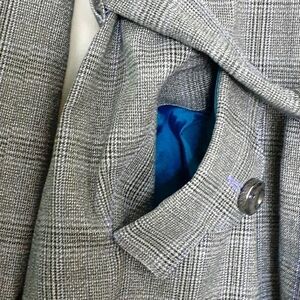 Custo Barcelona Vintage Check Prints Plaid Double Breasted Belted Coat Embroidered Size 10 US 42 Spain