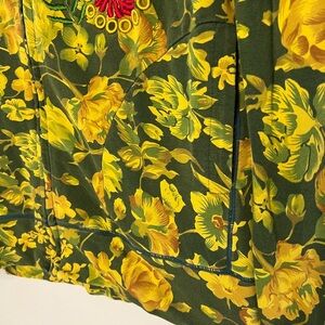 Cool floral Y2K era 2000s jacket with embroidered and contrast blue stitching. From European brand. Size is rubbed off the tag but would guess it to be a medium based on measurements. See below. No flaws and such a fun piece.