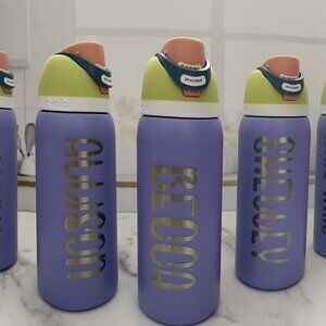 You can engrave your Name, logo, or any vector Design on an Owala water Bottle.