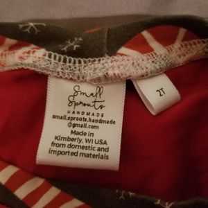 Practically brand new custom made Candy Cane Raglan top. Made locally by Small Sprouts. Super soft material and very cute for the holidays! No tips or stains.