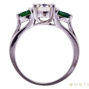 Custom 3-stone 1.02ct Diamond and 0.45cttw Green Garnet Ring