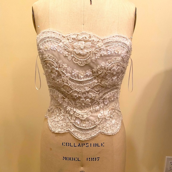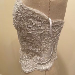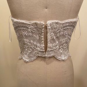 Custom made. Lace bustier. Fits the size 8 dress form Perfectly. Missing one pearl button in back- I will replace if sold.