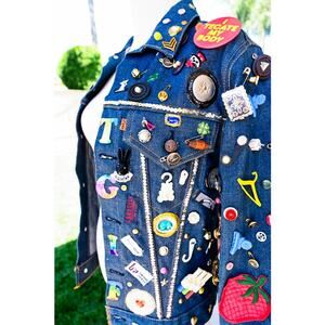 Tons of fun charms and trinkets on this homemade jacket- it is missing a few pieces here and there but overall this thing is decked out. Check out the pictures and feel free to ask any questions Size Small