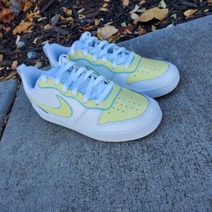 It is the cheaper version of an Air Force 1. Called the Nike Court Borough Low 2. Custom painted. Since they are cheaper I can charge less for doing customs! ๐ pastel yellow with blue trim size 6y or 7.5 womens