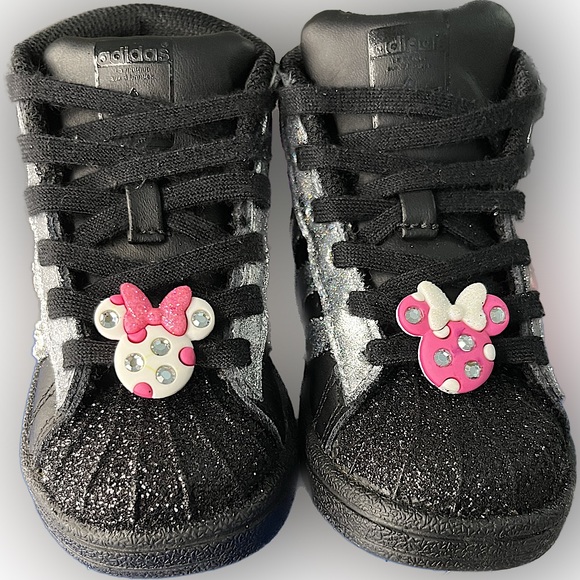 With Minnie buttons on the shoestrings