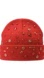 • Design: All-red knit beanie with coordinating red rhinestone and gem embellishments