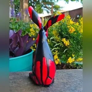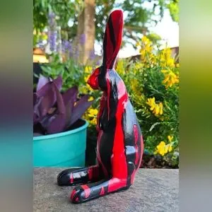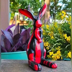 ♡Custom Artwork♡ Vibrant red and black rabbit figurine. Perfect for home decor. Handpainted art, meticulous drip design. Part of the artist's "Wonderland Dying" series. Approx 5" tall. (See artist photos of the process.) @RabbitsReviere on IG & TikTok.