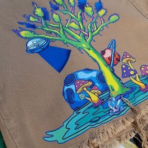 Custom BadSeed heat pressed green & blue trippy tree, UFO, & mushrooms shorts