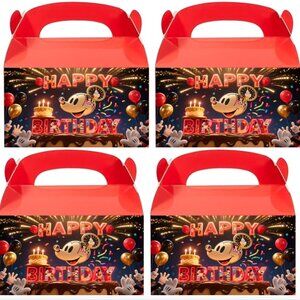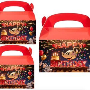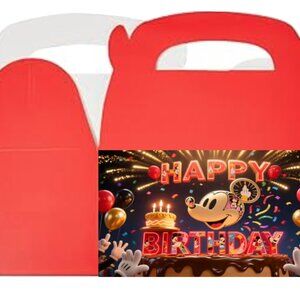 Make any birthday celebration extra special with these themed party favor boxes! This set of 10 red gable boxes features a festive Happy Birthday design, colorful balloons, confetti, and a birthday cake against a sparkling background. Perfect for holding treats, small gifts, or party favors, these boxes add a magical touch to your celebration. Each box comes with a convenient carrying handle and is easy to assemble.
