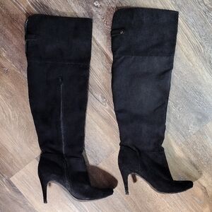 Custom Black Over the Knee Boots Sleek Suede Style