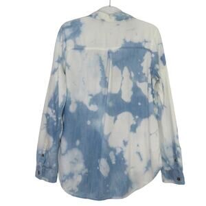 Custom Bleach Die Corset Lace Up Denim Button Down Top Medium Retro