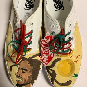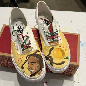 Custom "Bob Marley" Vans Created By Artist: Mens 10 Women's 11.5