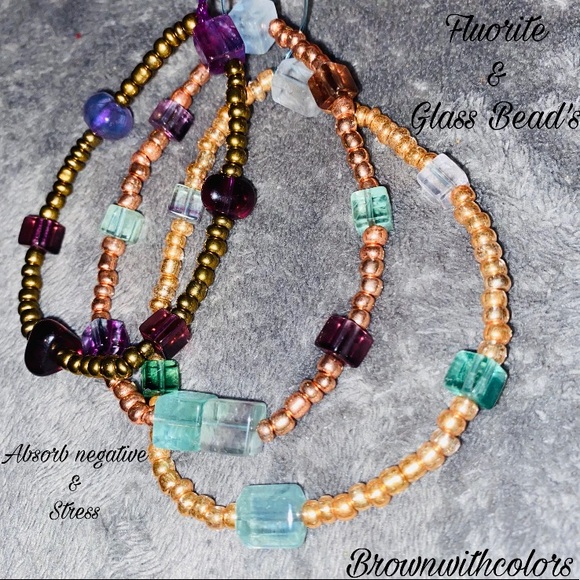 Fluorite and glass bead with stretchy durable string