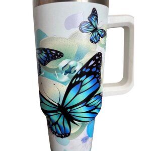 Custom Butterfly Floral Stainless Steel Tumbler With Handle & Lid - Insulated