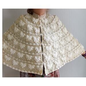 Custom Cape Soft White Beads Seed Pearls Sequins Silk Size Large Bridal Elegant