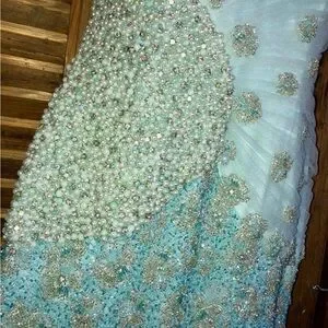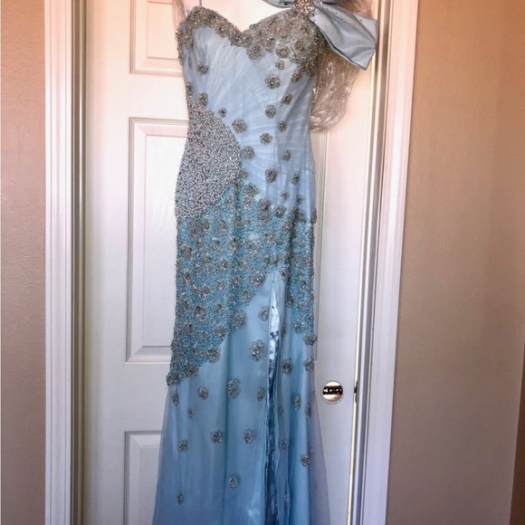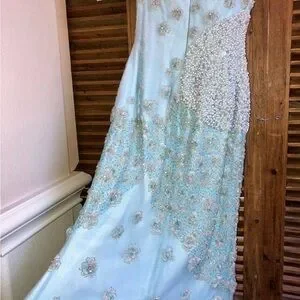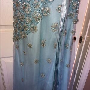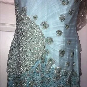 Step into elegance with this stunning blue evening gown. Perfect for special occasions, this dress features intricate detailing that adds a touch of glamour. Perfect condition, only worn once.