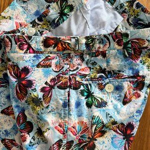 Custom Cotton Blue Butterfly Print Trousers - 30 waist