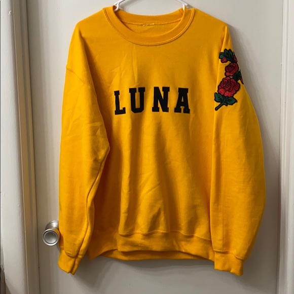 Medium. Custom hand made. Rose patch on left arm. Hand ironed letters.
